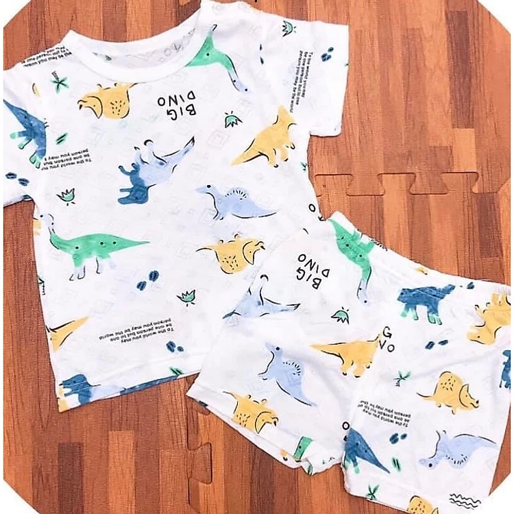 bộ cotton thông hơi cộc tay cúc vai cho bé trai full size từ 5 kg đến 18kg hoạ tiết dễ thương