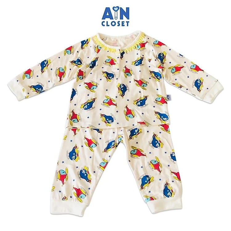 Bộ dài bé gái họa tiết May bay trực thăng thun cotton - AICDBGHOPQJZ - AIN Closet