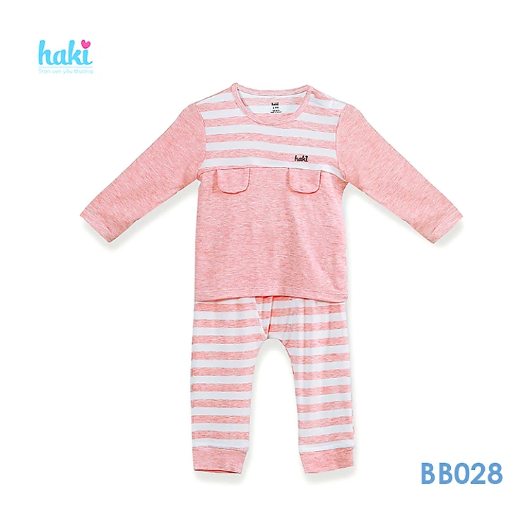 Bộ quần áo sơ sinh cho bé vải sợi tre - bamboo siêu mềm mịn cao cấp - đồ sơ sinh cho bé bé trai , đồ sơ sinh bé gái - Bộ dài tay cài vai can cầu ngực cho bé từ 3 tháng đến 3 tuổi (4-15kg) BB028 HAKI