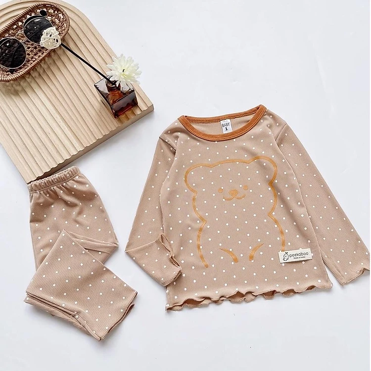 Bộ dài tay thu đông cho bé gái chất thun tăm lạnh mềm mịn in hình gấu chấm bi size từ 6 - 15 kg