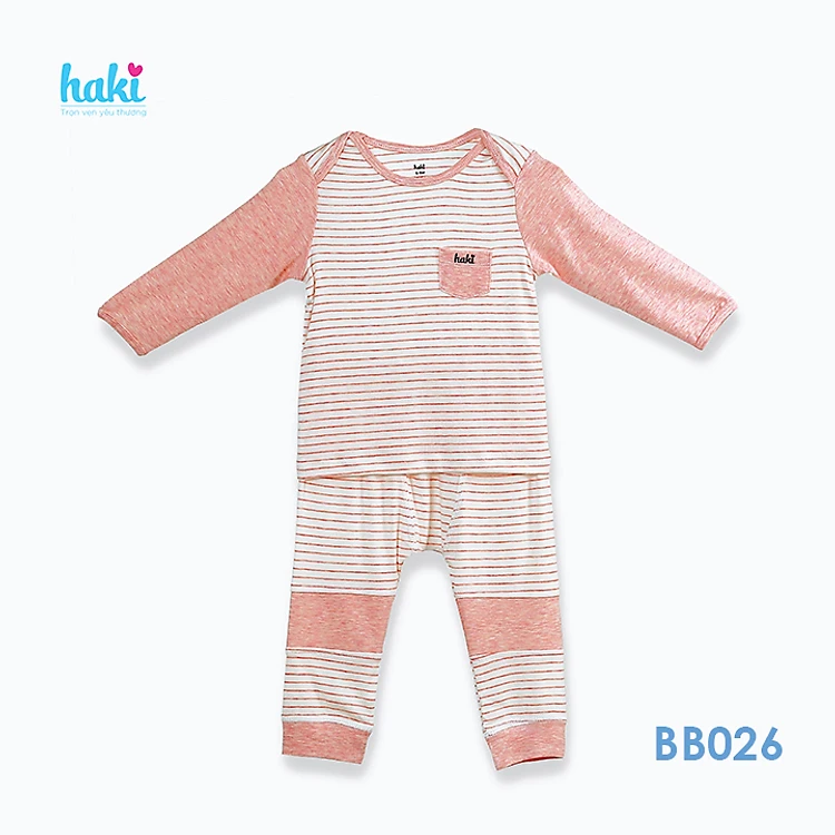 Bộ quần áo sơ sinh cho bé vải sợi tre - bamboo siêu mềm mịn cao cấp - đồ sơ sinh cho bé bé trai , đồ sơ sinh bé gái - Bộ dài tay vai chồm túi ngực vải cho bé từ 3 tháng đến 3 tuổi (4-13kg) BB026 HAKI