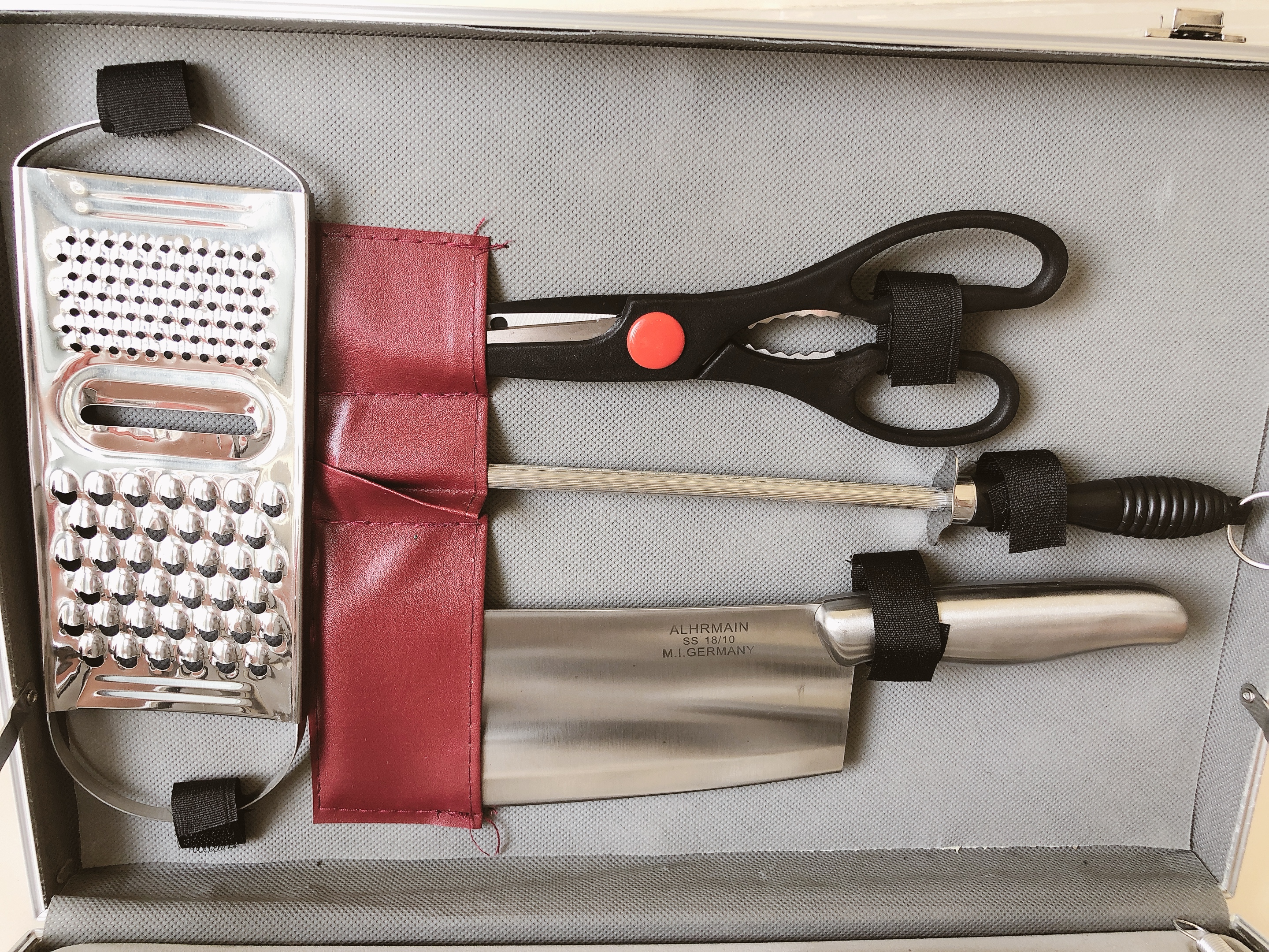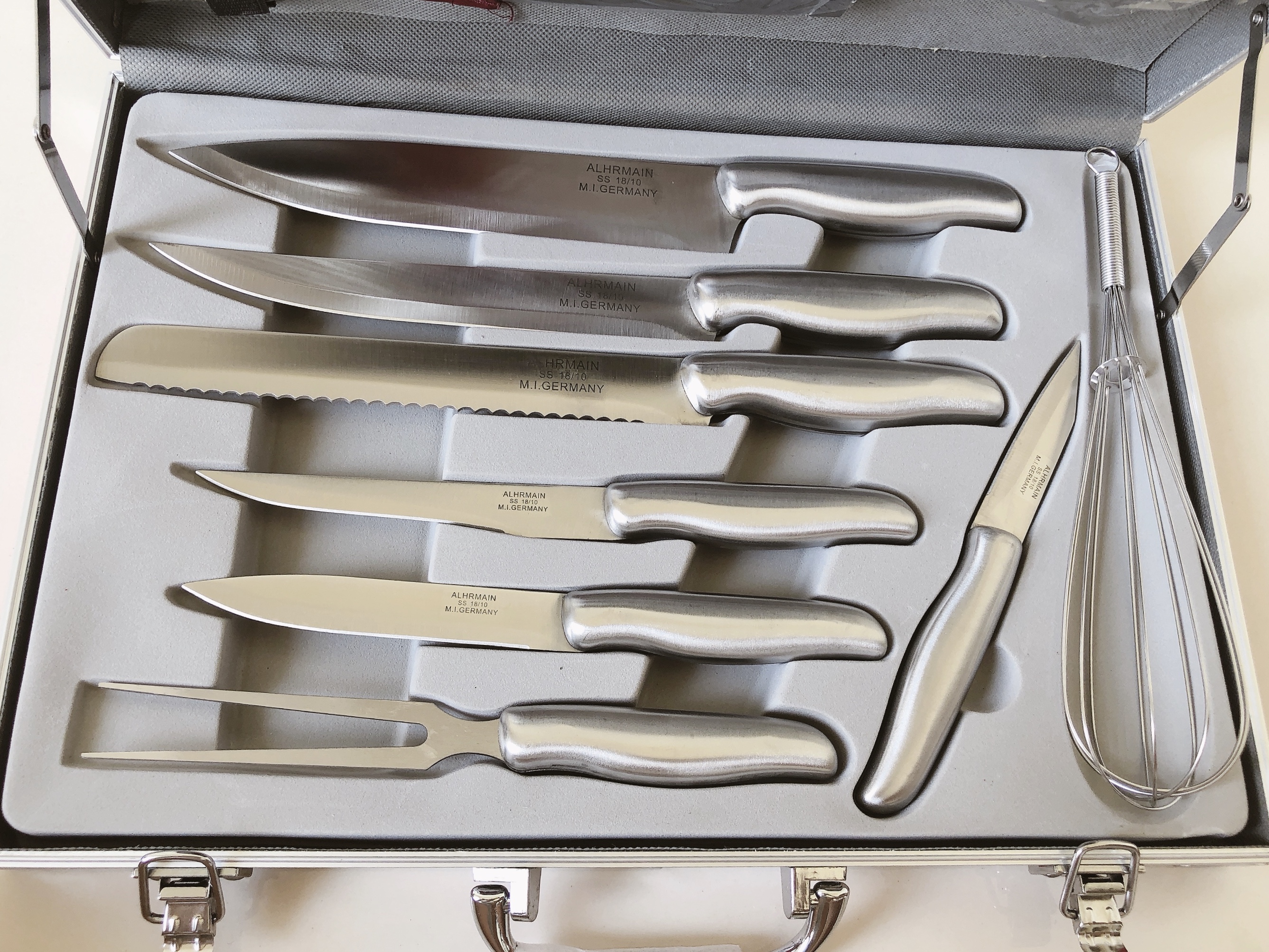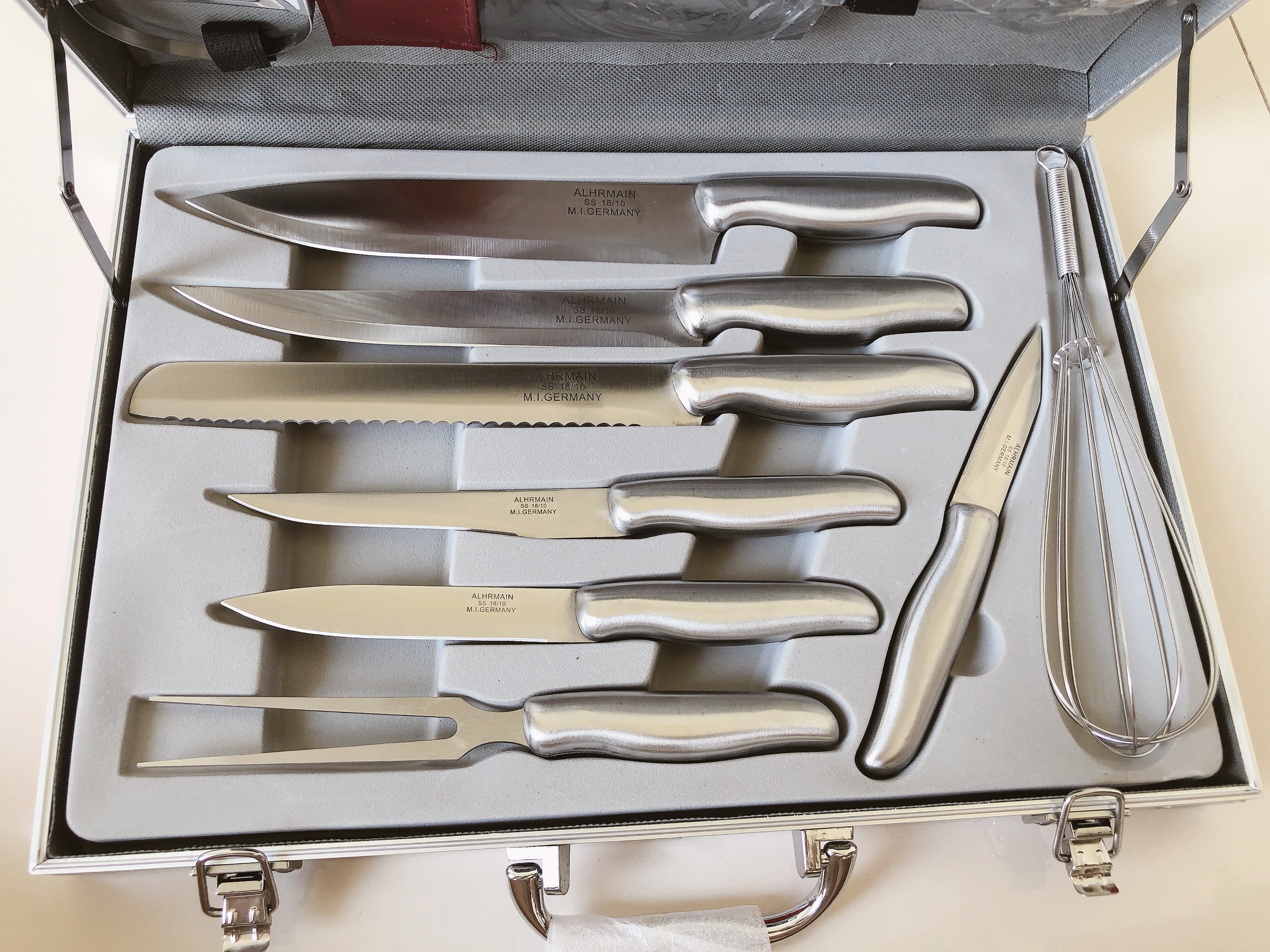Bộ dao 13 món cao cấp ( dùng cắt thịt, cá, bánh mì, trái cây ...,kéo, đồ đánh trứng và dao bào) làm bằng chất liệu thép không gỉ - đựng trong vali sang trọng