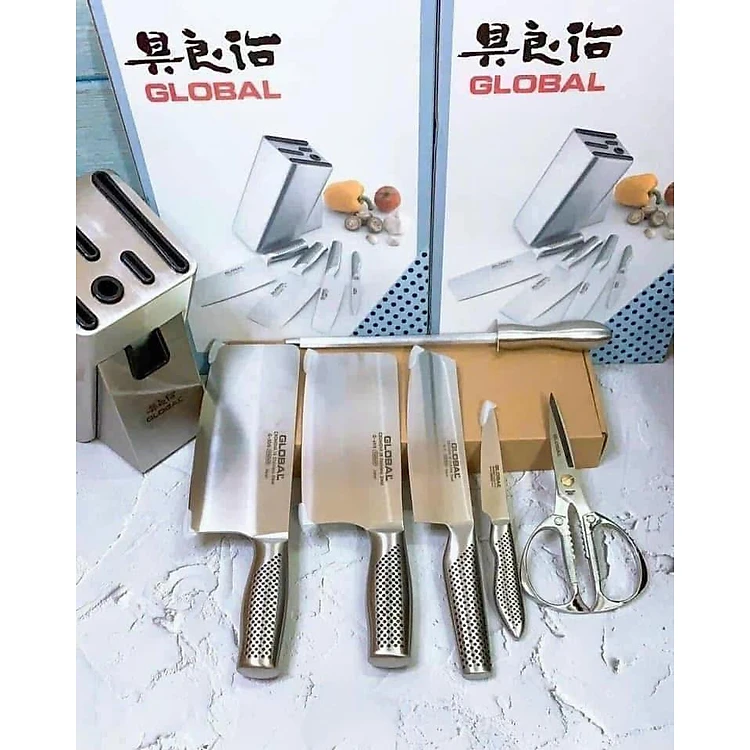 Bộ dao cao cấp đúc liền nguyên khối Global Yoshikin Nhật Bản 7 món hàng chính hãng
