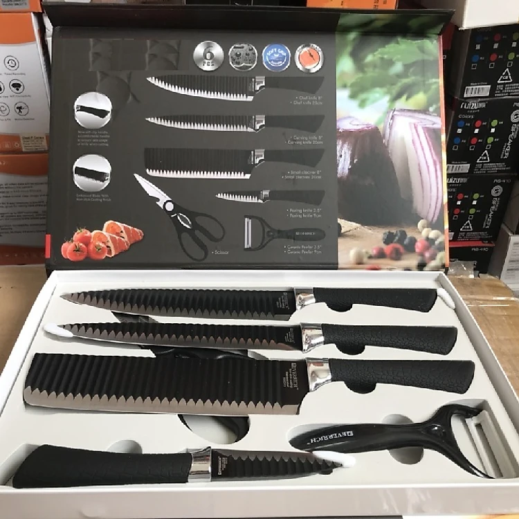 Bộ dao 6 món gồm các sản phẩm: 4 dao và 1 dụng cụ gọt vỏ trái cây rất tiện lợi, phục vụ đầy đủ nhu cầu sử dụng của mọi người. Cụ thể: