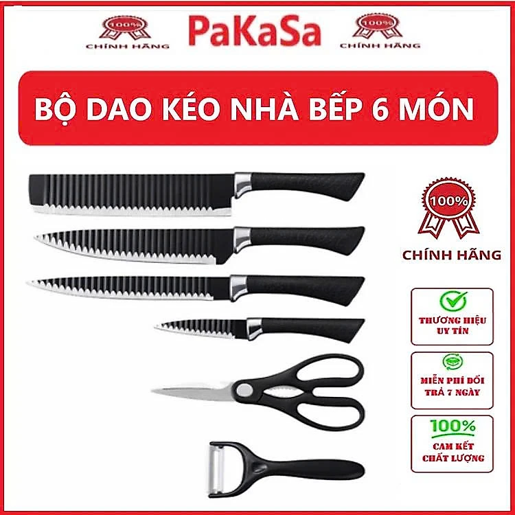 Bộ Dao Kéo Nhà Bếp 6 món , dao thép không gỉ gợn sóng chống dính siêu bén - Chính Hãng
