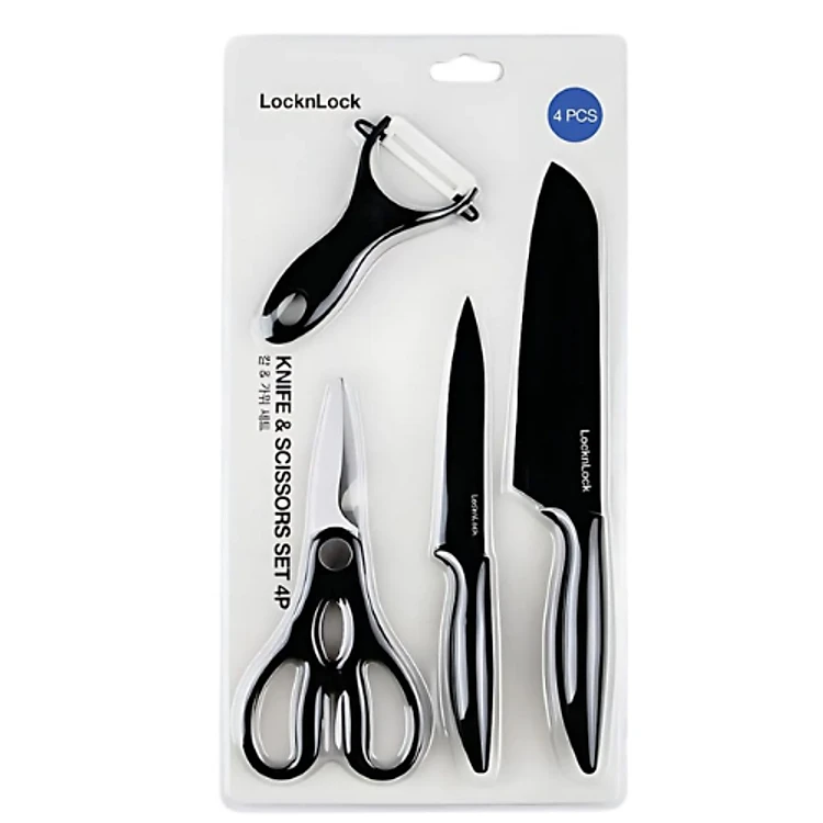 Bộ Dao LocknLock CKK306S4 4 Món Gồm 2 Dao, 1 Nạo Và 1 Kéo- Hàng Chính Hãng