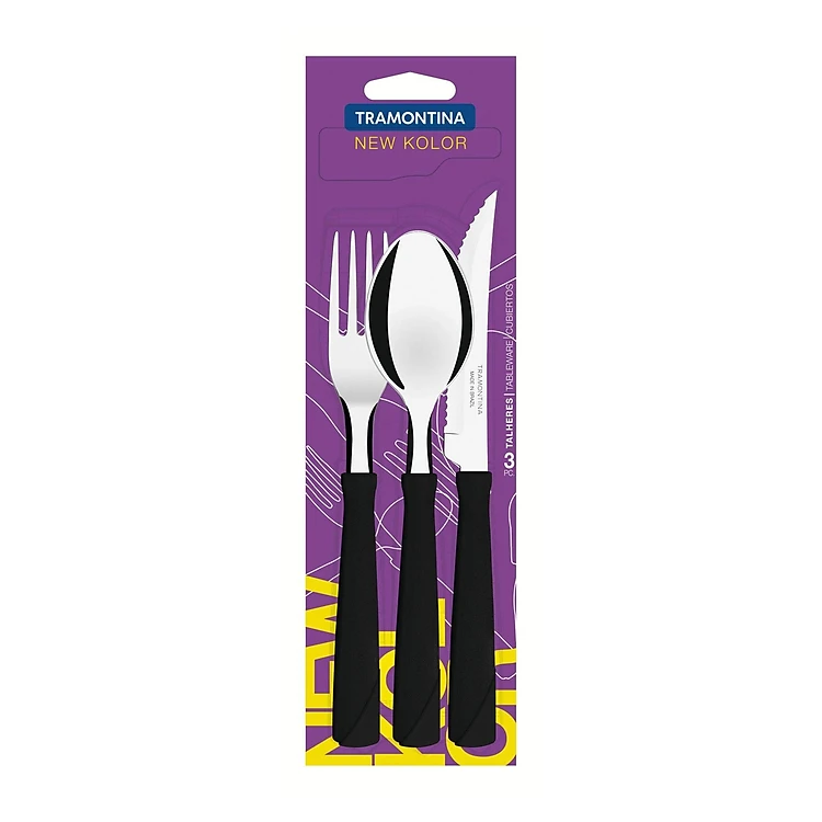 Bộ Dao Muỗng Nĩa Tramontina 3 Món Lưỡi Thép Không Gỉ Cán Nhựa Màu Đen SX Tại Brazil TRA23199.069