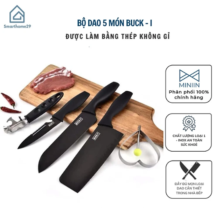 Bộ Dao Nhà Bếp 5 Món Cao Cấp - Hàng Nội Địa Nhật - HÀNG CHÍNH HÃNG NINIIN