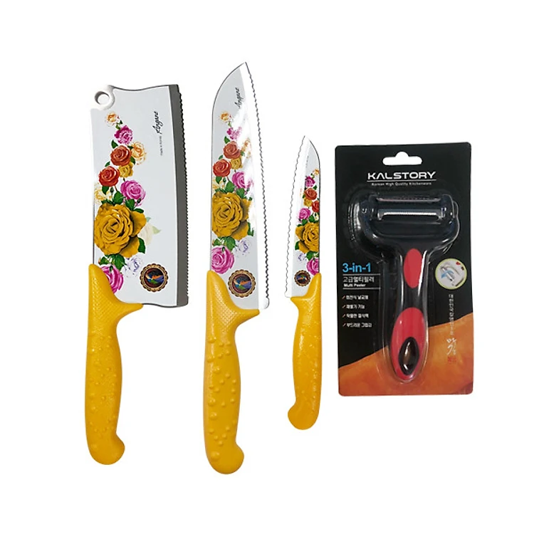 Bộ sản phẩm gồm: 1 dao chặt đa năng (dài 30cm), 1 dao thái Santoku (dài 33cm), 1 dao gọt hoa quả (dài 24cm).