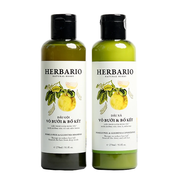 Bộ Dầu gội và Dầu xã Vỏ Bưởi & Bồ kết Herbario (270ml x 2)