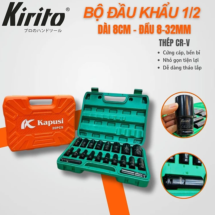 Bộ đầu khẩu 1/2 dài 8cm màu đen từ số 8-32mm cao cấp thép CRV sử dụng tháo lắp bulong chuyên nghiệp
