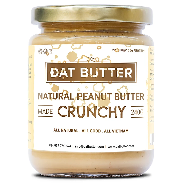 • Bơ Đậu Phộng Tự Nhiên Có Hạt Đạt Butter (240g) là sản phẩm có chiết xuất hoàn toàn từ tự nhiên với tỉ lệ 96% đậu phộng (hay còn gọi là lạc), 3% mật ong nguyên chất thuần tự nhiên và 1% là muối. Thông qua quy trình trồng sạch và được chế biến hoàn toàn không có chất bảo quản hay chất điều vị nên an toàn cho người dùng.