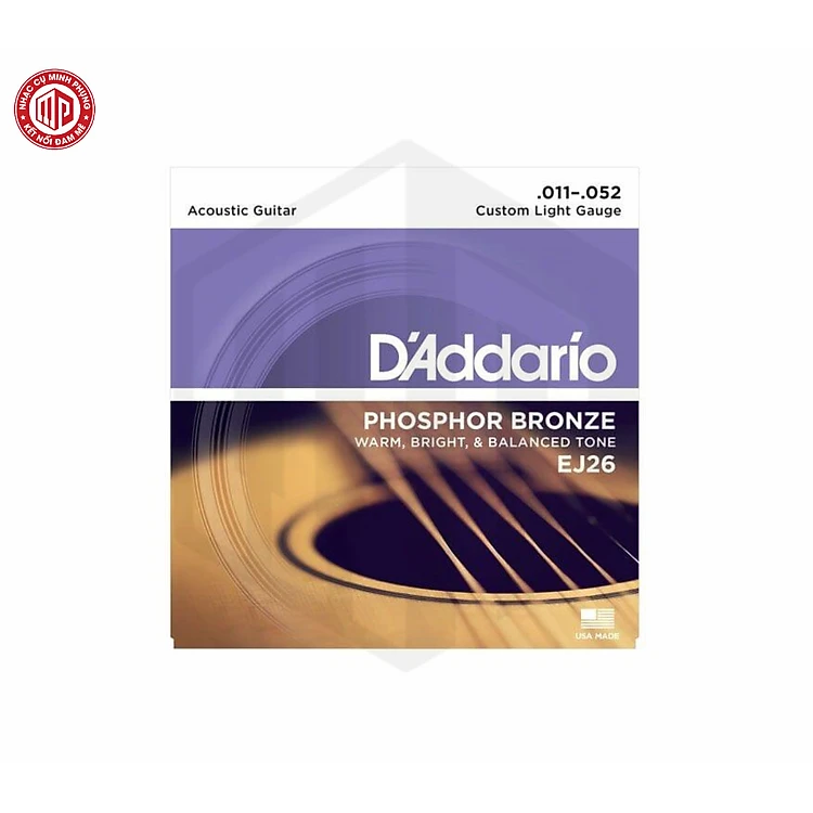 Bộ dây đàn acoustic guitar cao cấp D'Addario EJ26 Custom Light Gauge Phosphor Bronze .011 - .052 - Hàng chính hãng