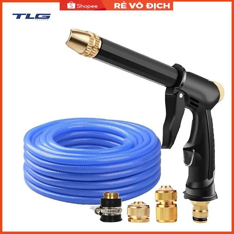 Bộ dây và vòi xịt rửa xe tưới cây tăng áp,vòi xịt rửa,vòi tưới cây 810-2576 (dây xanh- cút nối đồng)