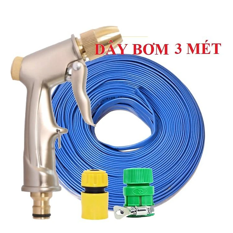 Bộ dây vòi xịt nước ️ ,tăng áp 3 lần,loại 3m,5m 206701-1 đầu đồng,cút nối nhựa vàng+ mở chai