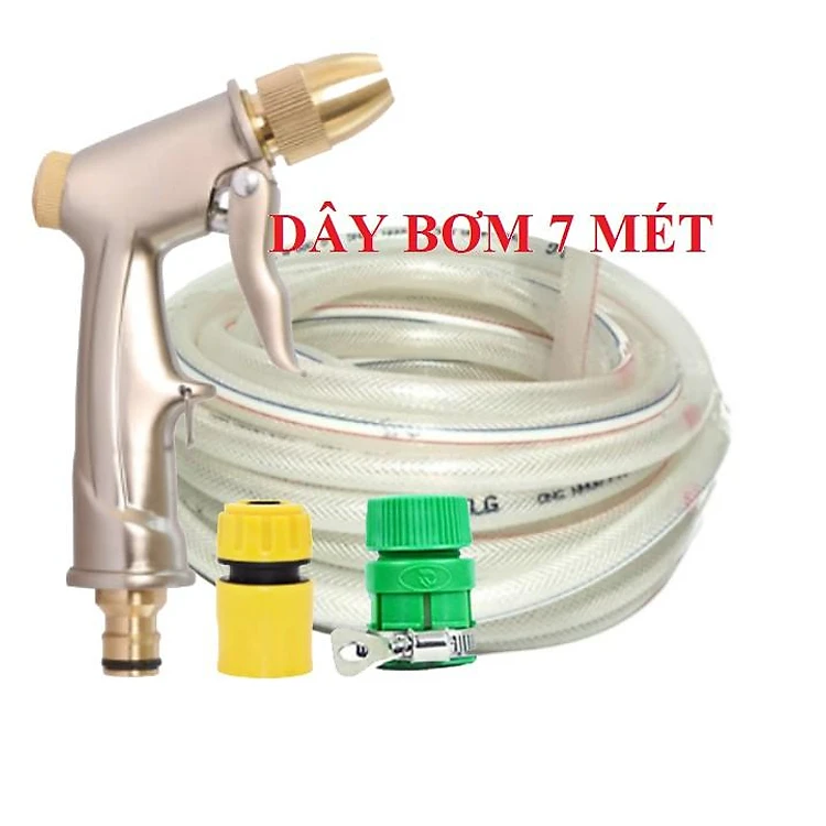 Bộ dây vòi xịt nước ️ , tăng áp 3 lần, loại 7m, 10m 206701-1 đầu đồng,cút,nồi v+ túi đựng bút