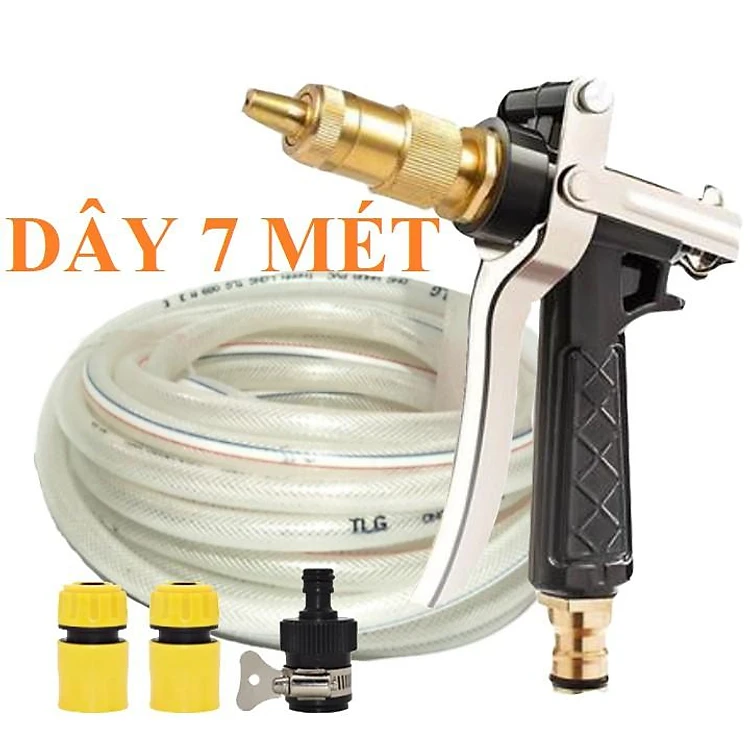 Bộ dây vòi xịt nước rửa xe,tưới cây đa năng, tăng áp 3 lần,loại 7m,10m 206236 đầu đồng, cút,nối nhựa đen+ tặng móc khoá