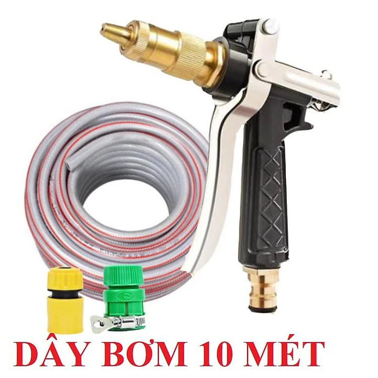 Bộ dây vòi xịt nước rửa xe, tưới cây đa năng, tăng áp 3 lần, loại 7m, 10m 206236 đầu đồng, cút, + tặng mở chai