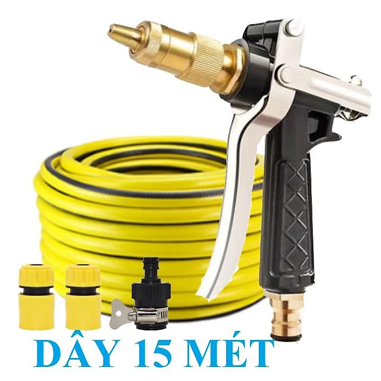 Bộ dây vòi xịt nước rửa xe, tưới cây . tăng áp 3 lần, loại 15m 206236 đầu đồng,cút+ tặng mở chai