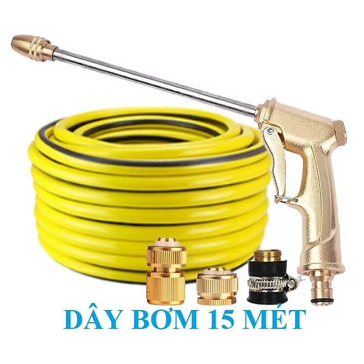 Bộ dây vòi xịt nước rửa xe, tưới cây . tăng áp 3 lần, loại 15m 206318Yđầu đồng, cút đồng,+ tặng đai