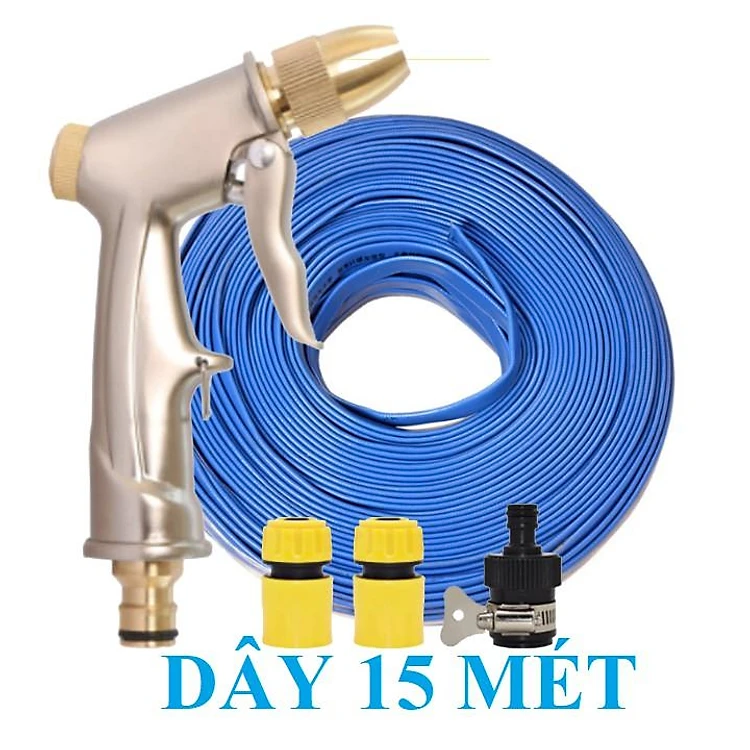 Bộ dây vòi xịt nước rửa xe, tưới cây . tăng áp 3 lần, loại 15m 206701-1 đầu đồng,cút+ tặng mở chai