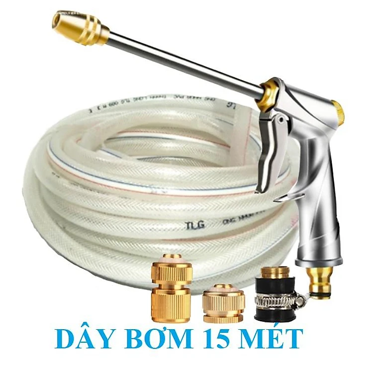 Bộ dây vòi xịt nước rửa xe, tưới cây . tăng áp 3 lần, loại 15m 206701-2 đầu đồng, cút đồng