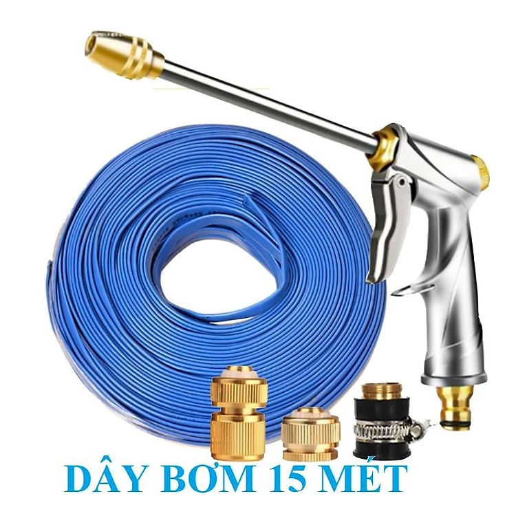 Bộ dây vòi xịt nước rửa xe, tưới cây . tăng áp 3 lần, loại 15m 206701-2 đầu đồng, cút đồng