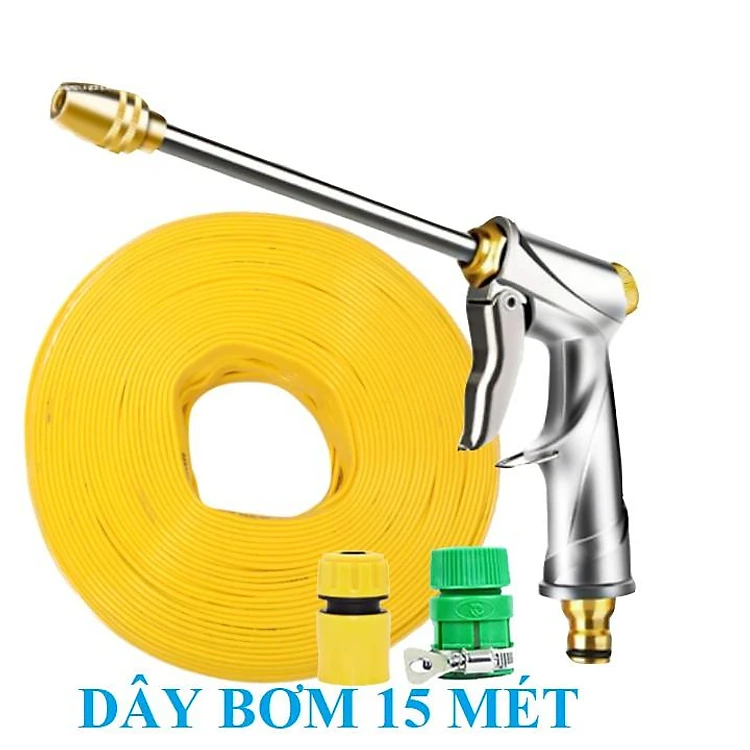 Bộ dây vòi xịt nước rửa xe, tưới cây . tăng áp 3 lần, loại 15m 206701-2 đầu đồng,cút,nối PE
