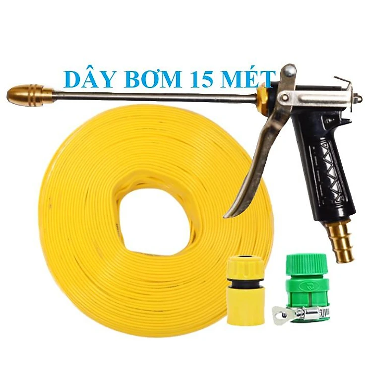 Bộ dây vòi xịt nước rửa xe, tưới cây . tăng áp 3 lần, loại 15m 206701-2 đầu đồng,cút+ tặng đai