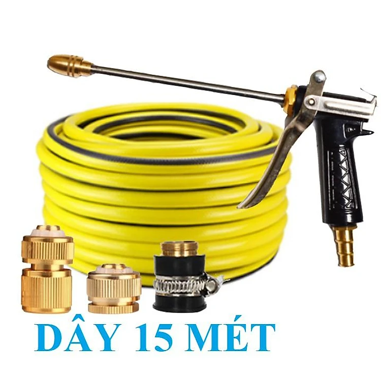 Bộ dây vòi xịt nước rửa xe, tưới cây . tăng áp 3 lần, loại 15m 206701-3 đầu đồng, cút đồng