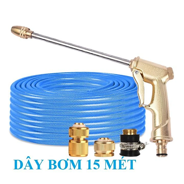 Bộ dây vòi xịt nước rửa xe, tưới cây . tăng áp 3 lần, loại 15m 206701-3 đầu đồng,cút đồng+ tặng mở chai