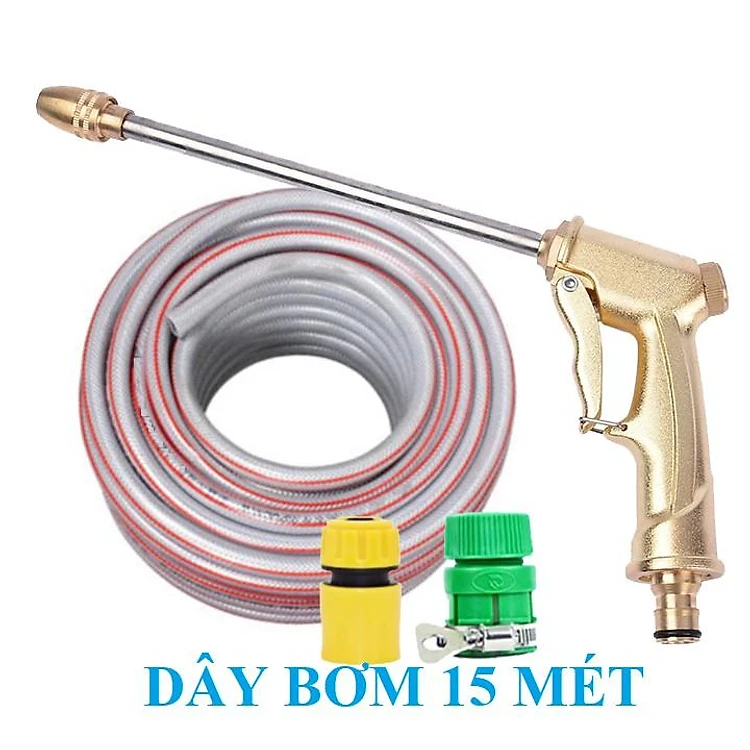 Bộ dây vòi xịt nước rửa xe, tưới cây . tăng áp 3 lần, loại 15m 206701-3 đầu đồng, cút+ tặng đai