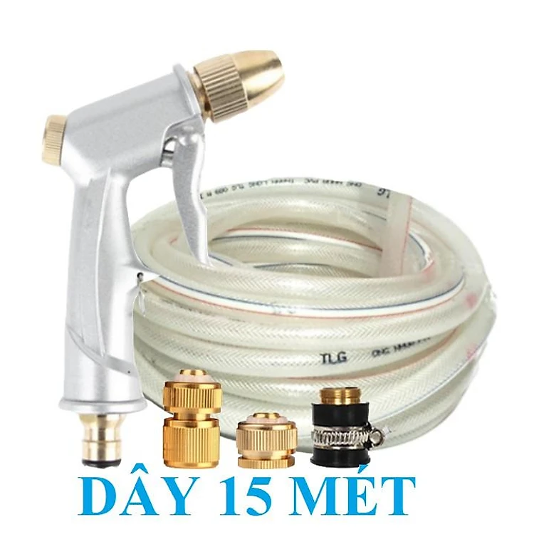 Bộ dây vòi xịt nước rửa xe, tưới cây . tăng áp 3 lần, loại 15m 206701 đầu đồng,cút đồng+ tặng mở chai