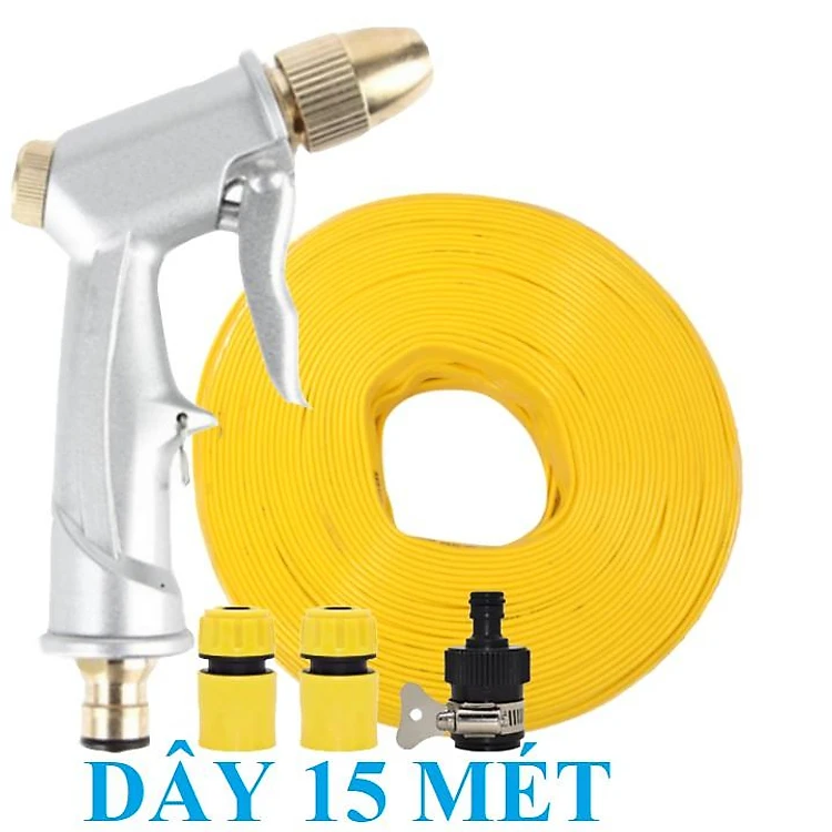 Bộ dây vòi xịt nước rửa xe, tưới cây . tăng áp 3 lần, loại 15m 206701 đầu đồng,cút,nối đen+ tặng đai
