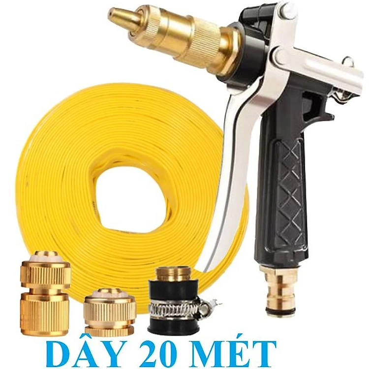 Bộ dây vòi xịt nước rửa xe, tưới cây . tăng áp 3 lần, loại 20m 206236 đầu đồng,cút đồng+ tặng đai