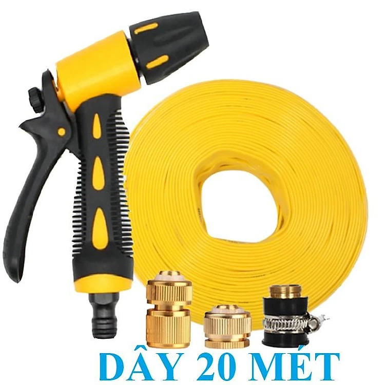 Bộ dây vòi xịt nước rửa xe, tưới cây . tăng áp 3 lần, loại 20m 206236 đầu đồng,cút đồng+ tặng đai