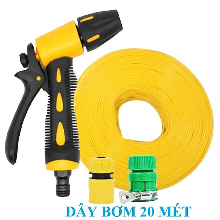 Bộ dây vòi xịt nước rửa xe, tưới cây . tăng áp 3 lần, loại 20m 206236 đầu đồng, cút, nối PE