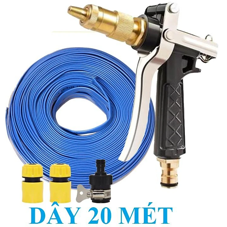 Bộ dây vòi xịt nước rửa xe, tưới cây . tăng áp 3 lần, loại 20m 206236 đầu đồng, cút, + tặng đai