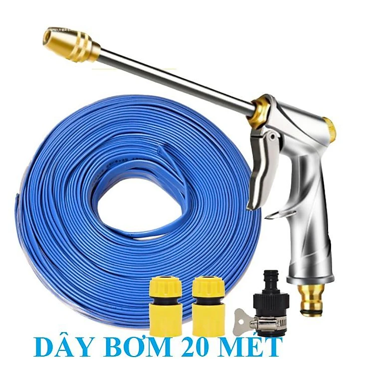 Bộ dây vòi xịt nước rửa xe, tưới cây . tăng áp 3 lần, loại 20m 206318 đầu đồng, cút,nối đen+ tặng mở chai