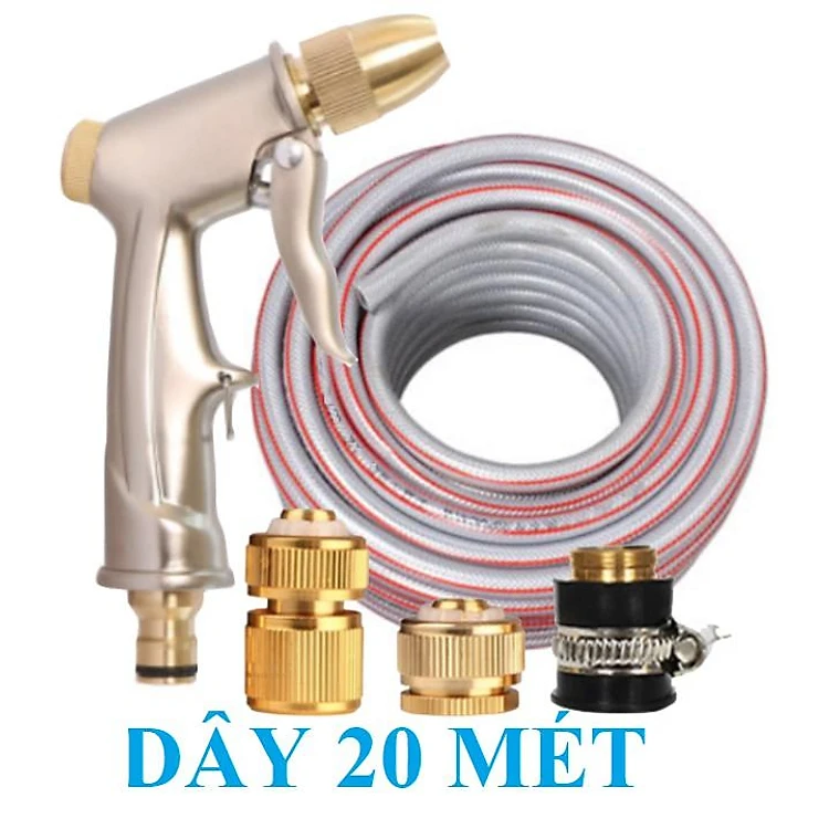Bộ dây vòi xịt nước rửa xe, tưới cây . tăng áp 3 lần, loại 20m 206701-1 đầu đồng,cút đồng,+ tặng mở chai