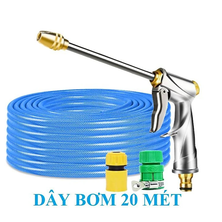 Bộ dây vòi xịt nước rửa xe, tưới cây . tăng áp 3 lần, loại 20m 206701-2 đầu đồng, cút, + tặng đai