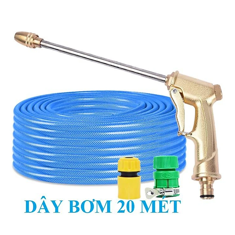Bộ dây vòi xịt nước rửa xe, tưới cây . tăng áp 3 lần, loại 20m 206701-3 đầu đồng,cút+ tặng đai
