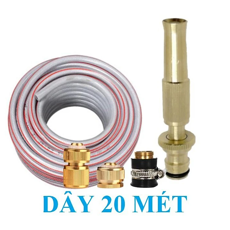 Bộ dây vòi xịt nước rửa xe, tưới cây . tăng áp 3 lần, loại 20m 206701 đầu đồng,cút đồng,+ tặng mở chai