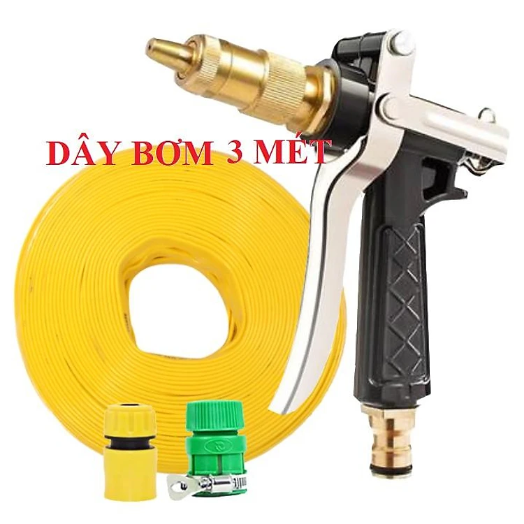 Bộ dây vòi xịt nước rửa xe,tưới cây .tăng áp 3 lần,loại 3m,5m 206236 đầu đồng,cút,nối nhựa vàng+ tặng móc khoá