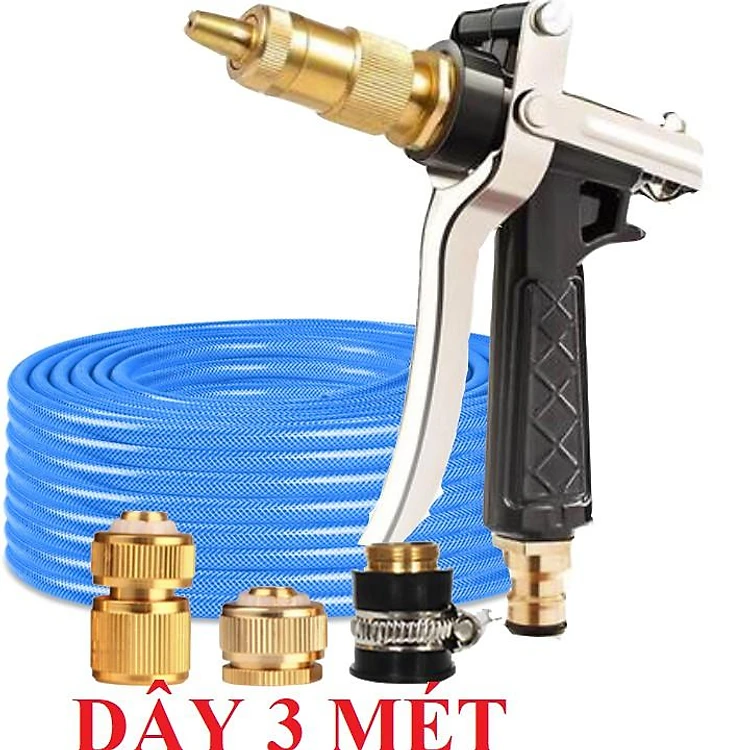 Bộ dây vòi xịt nước rửa xe, tưới cây . tăng áp 3 lần, loại 3m, 5m 206236Sđầu đồng, cút đồng, d.vàng