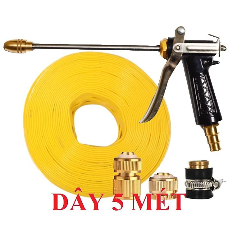 Bộ dây vòi xịt nước rửa xe,tưới cây ,tăng áp 3 lần, loại 3m, 5m 206318 đầu đồng,cút đồng,nối đồng+ móc khoá