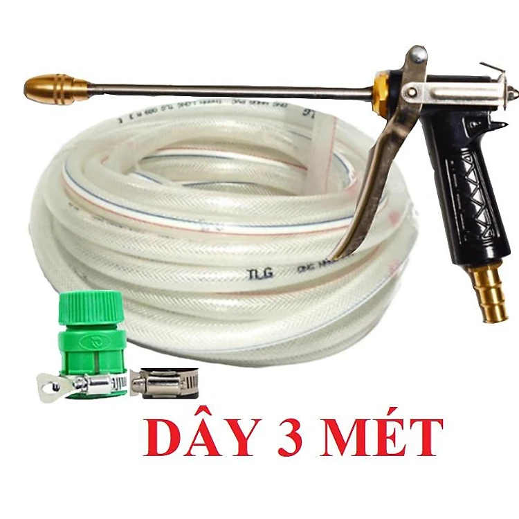 Bộ dây vòi xịt nước rửa xe, tưới cây . tăng áp 3 lần, loại 3m, 5m 206318E đầu đồng, đai, nối, d.vàng