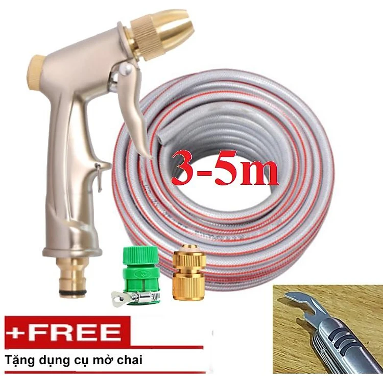 Bộ dây vòi xịt nước rửa xe,tưới cây,tăng áp 3 lần,loại 3m,5m 206701-1 đầu đồng,cút đồng,nối nhựa vàng+tặng mở chai
