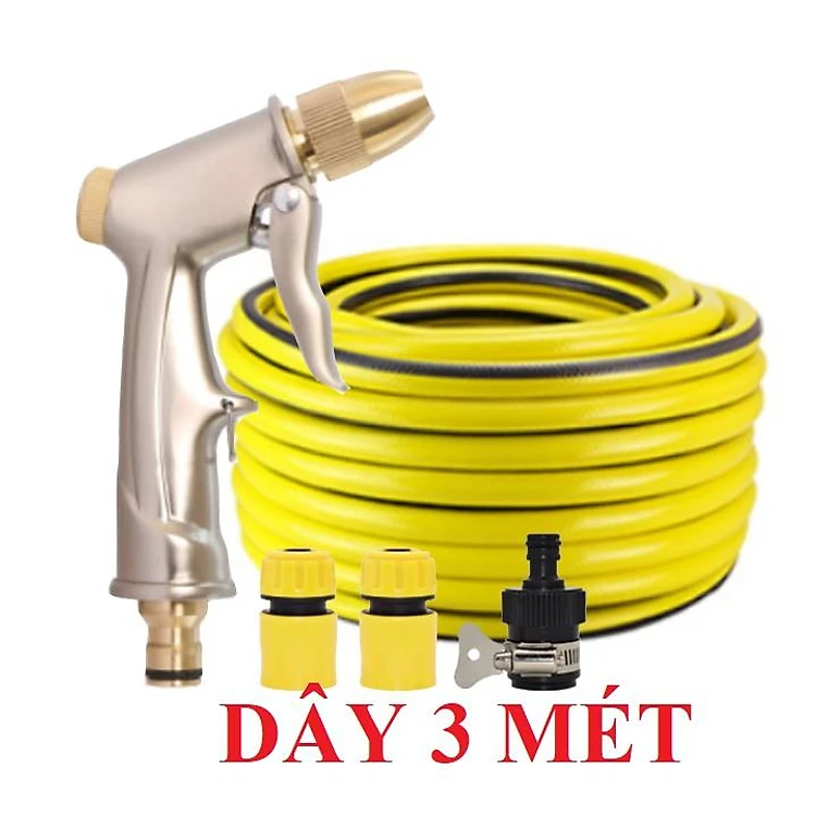 Bộ dây vòi xịt nước rửa xe, tưới cây . tăng áp 3 lần, loại 3m, 5m 206701-1 đầu đồng,cút,nối nhựa đen+ tặng đai