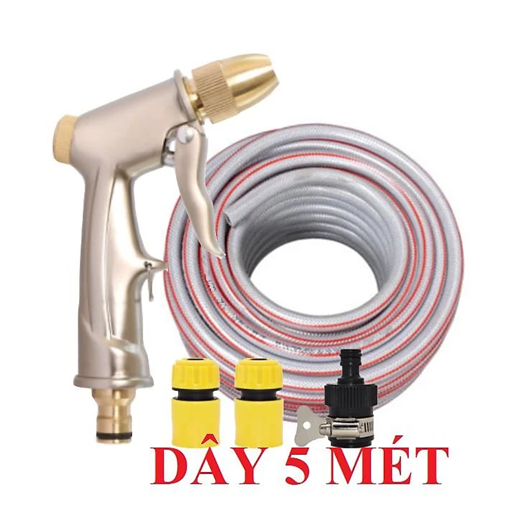 Bộ dây vòi xịt nước rửa xe, tưới cây . tăng áp 3 lần, loại 3m, 5m 206701-1 đầu đồng,cút,nối nhựa đen+ tặng đai